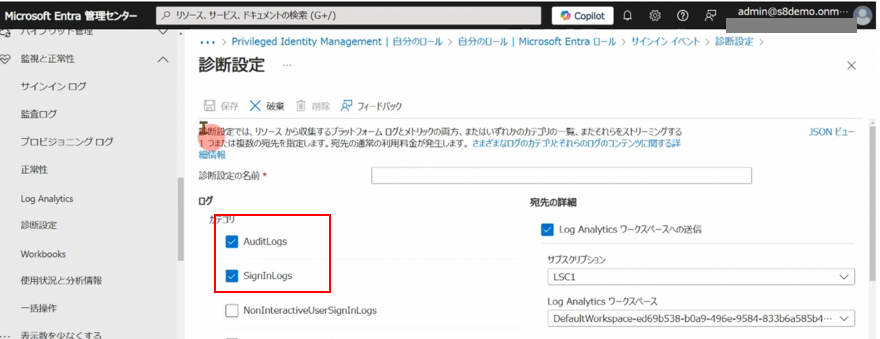 Sentinelが有効になっているLog Analyticsワークスペースにログを転送する方法