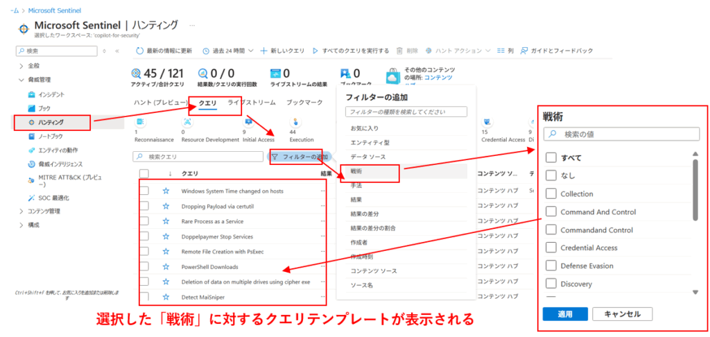 ただし、自分が実行したいクエリ(調査したい攻撃に関するクエリ)テンプレートを絞り込むのに、具体的にどの「戦術」を選択すればよい判断するのも難しいと思うので、使いこなすためには学習コストが掛かりそうです。