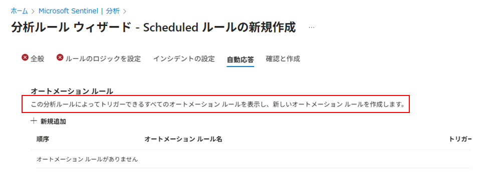 分析ルールとオートメーションルールを紐づけることが可能です。これによりこの分析ルールによってアラート、インシデントが検知された際に実行するべき自動アクションを事前に定義できます。