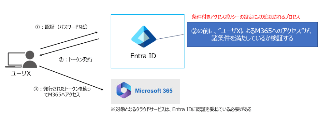 Entra IDによるユーザ認証後に、ユーザがクラウドサービス(Microsoft 365など)にアクセスする際に、細かな条件に応じて、アクセスを制御できる機能