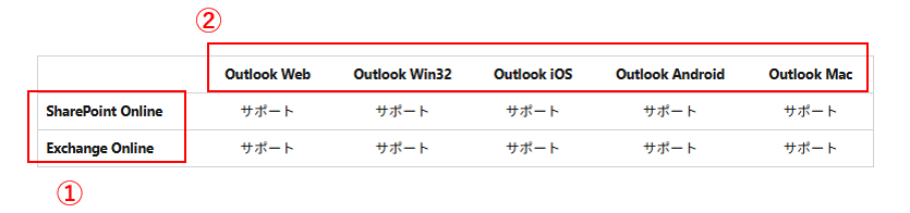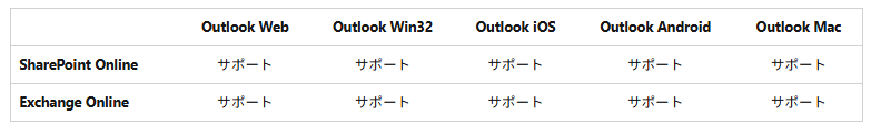 ここでいう「クライアントアプリ」については、Outlook等のMS製品に限らず、サードパーティのクライアントアプリも含まれます。