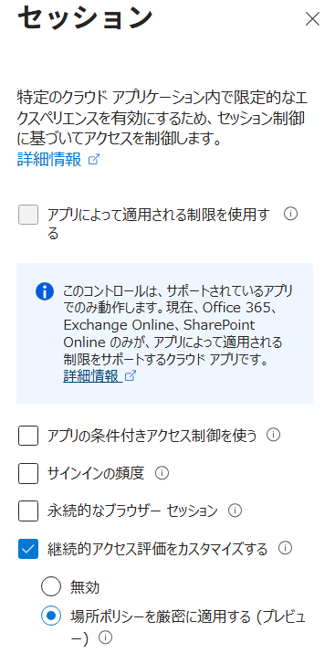条件付きアクセスポリシー設定における「場所ポリシーを厳密に適用する (プレビュー) 」について