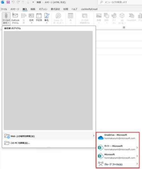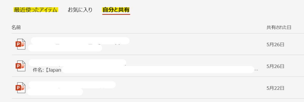 - PowerPoint の [最近使ったアイテム] や [自分と共有] からメールに添付されたドキュメントを直接参照するようなケース(以下)