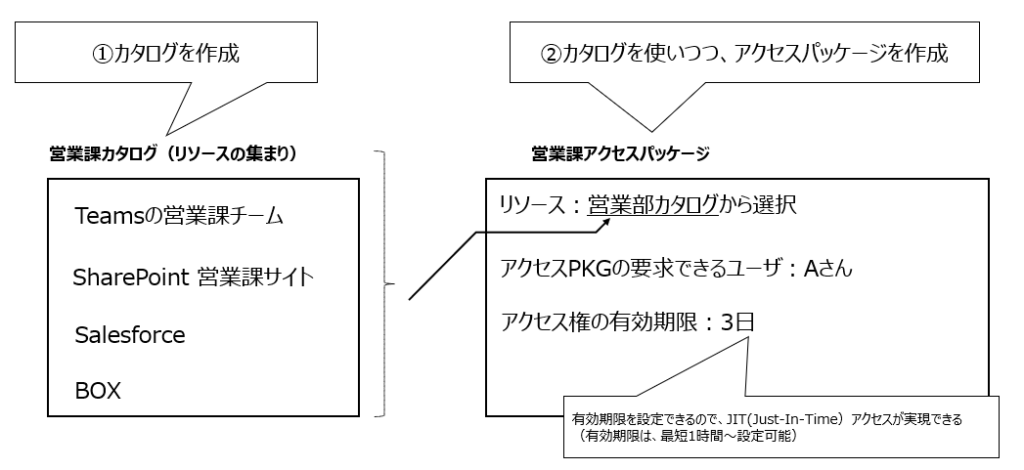 ・アクセス権が割り当てられる時間は、アクセスパッケージの設定で指定できる(不要なアクセス権が永続的に割り当てられ続けるリスクを回避できる)
