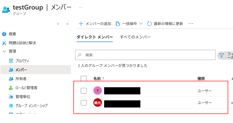 このリソースを含むアクセスPKGをユーザに適用されることで、実際にEntra IDのグループ画面においてもメンバー(または所有者)として追加されます。
