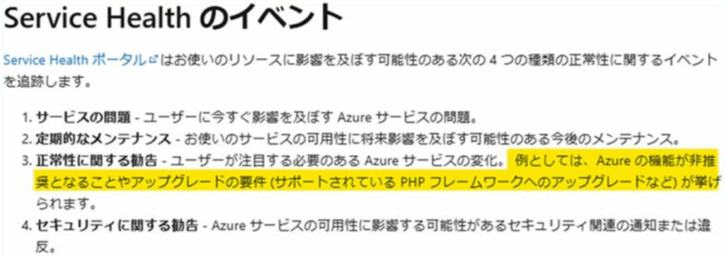 Azureは一度導入したら終わりではなく、サービス側の仕様変更が発生したタイミングで、ユーザ側で対応が必要になるケースがあります。たとえば、一部の機能の終息等です。