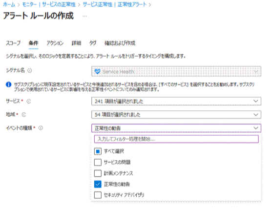 https://learn.microsoft.com/ja-jp/azure/azure-monitor/alerts/alerts-create-activity-log-alert-rule?tabs=service-health#configure-alert-rule-actions