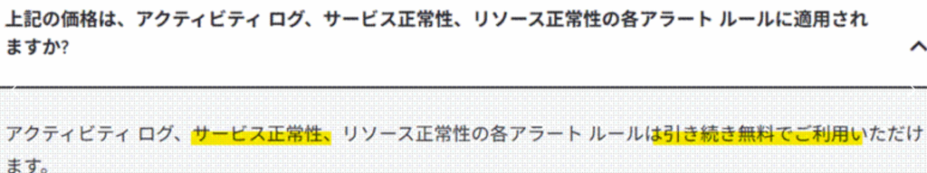 サービス正常性アラート ルール自体の作成や利用は無料です。