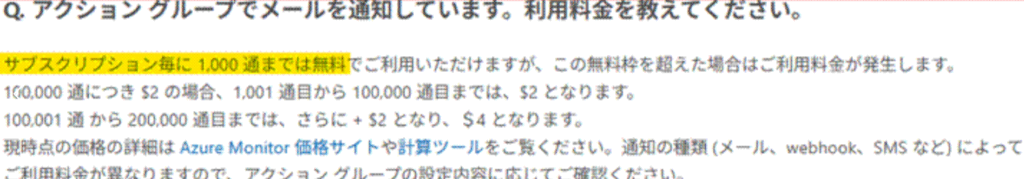 メール通知の場合の無料枠は 1000 通/月となっており、無料枠を超えない場合は、サービス正常性アラート ルールを実質無料で利用可能です。ただし、ここでの通知の無料枠はサブスクリプション単位となります。