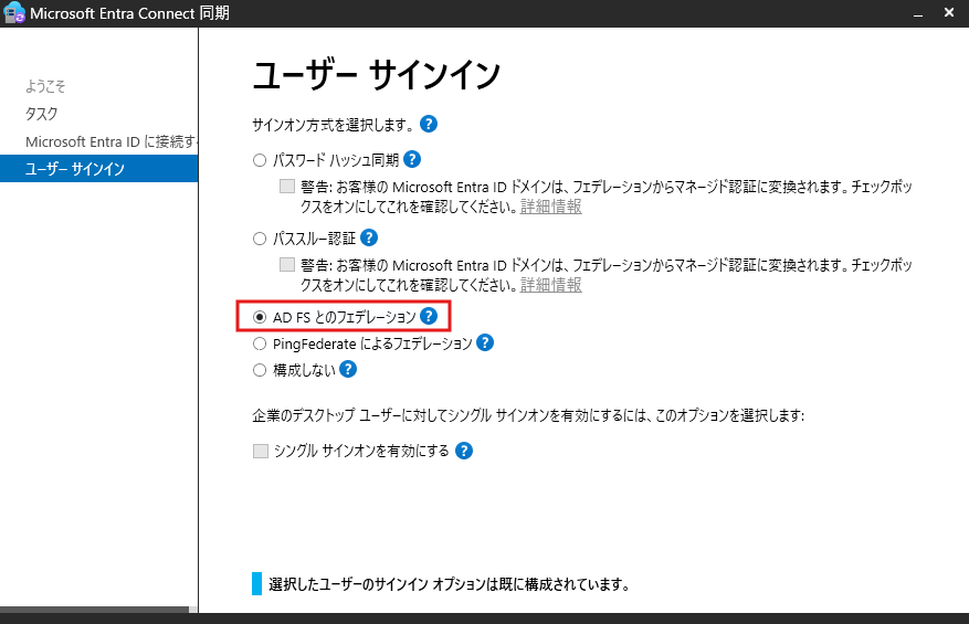 あまり利用されていませんが、ADFSを利用して、Entra ハイブリッド参加を実現する方法があります。