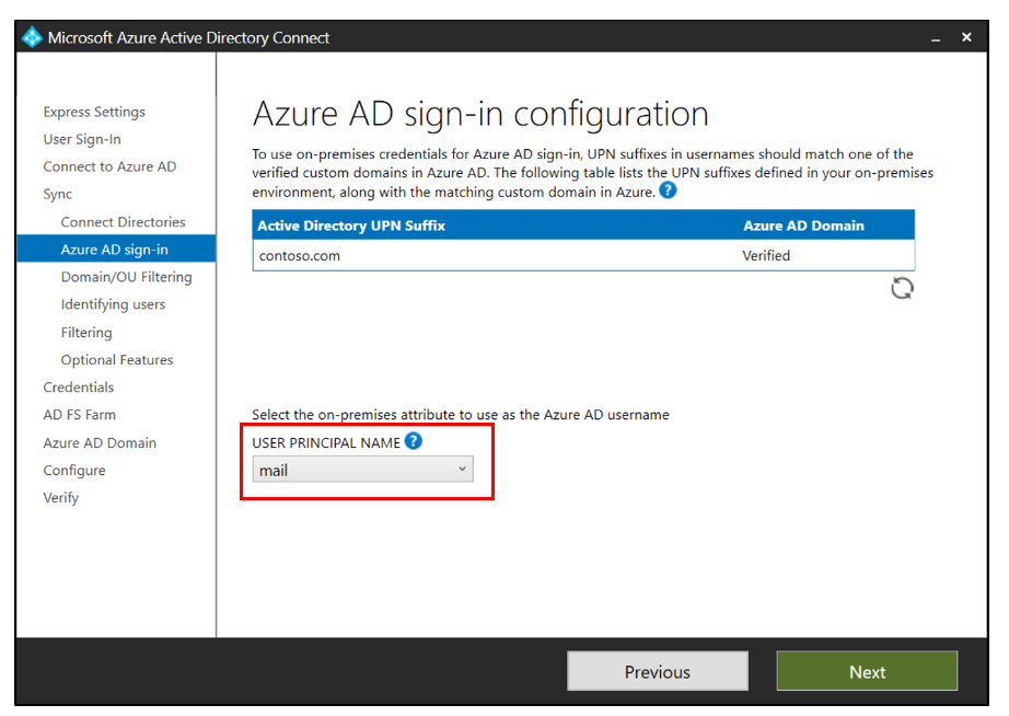 - 「そのユーザー認証は Federated に遷移し、ADFS でのユーザー認証が行われます。ここでクライアントが提示するユーザーの資格情報は Windows ログオン画面で指定した[オンプレ AD ユーザー] の資格情報になります。」とあるが、ADFS代替ログインIDの設定が必須の状況下で、[オンプレ AD ユーザー] の資格情報(「.local」のUPNを想定)でADFSで認証が完了するのか(ADFS代替ログインIDの設定が必須であれば、mail属性等での認証が必要になるのではないか)