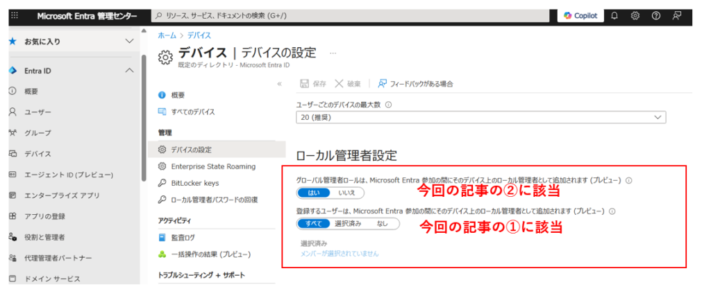 そもそも、①Microsoft Entra 参加の操作を実行したEntra IDユーザーにローカル管理者権限を付与させない方法