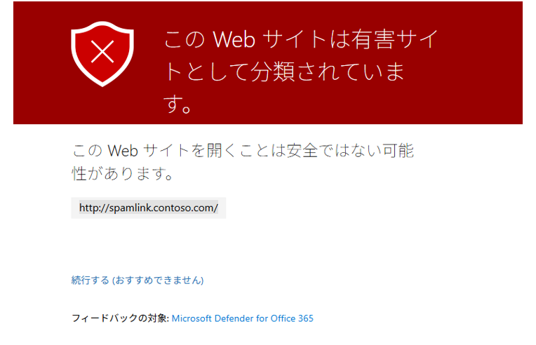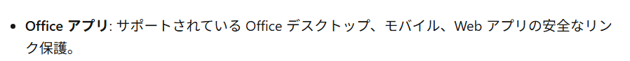Exchange Onlineメール、Teamsメッセージ、Office 365 Appsで開いたドキュメント等に含まれている危険なURLをユーザがクリックした際に、アクセスを止めてくれる機能です。