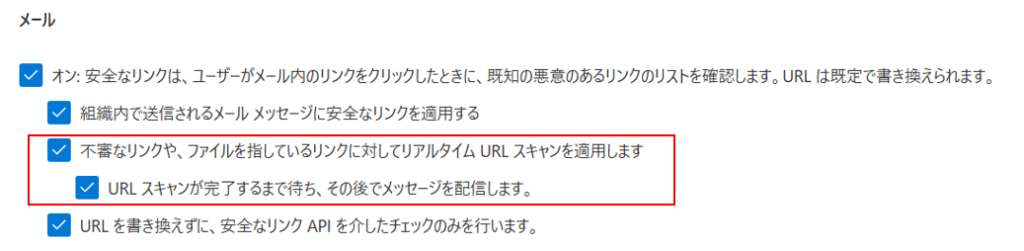 <メール メッセージの安全なリンク設定>
