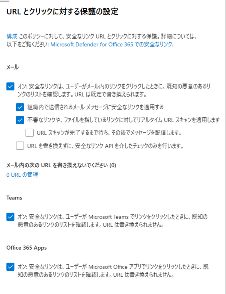 https://learn.microsoft.com/ja-jp/defender-office-365/safe-links-policies-configure#how-do-you-know-these-procedures-worked