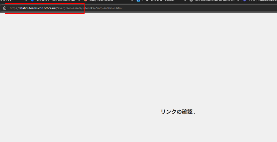 以下のような画面がブラウザに表示されます(https://apc01.safelinks.protection.outlook.com/~というURLにリダイレクトされます)