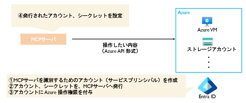 ・Azure MCP サーバにAzure を操作するための権限を付与する必要がある